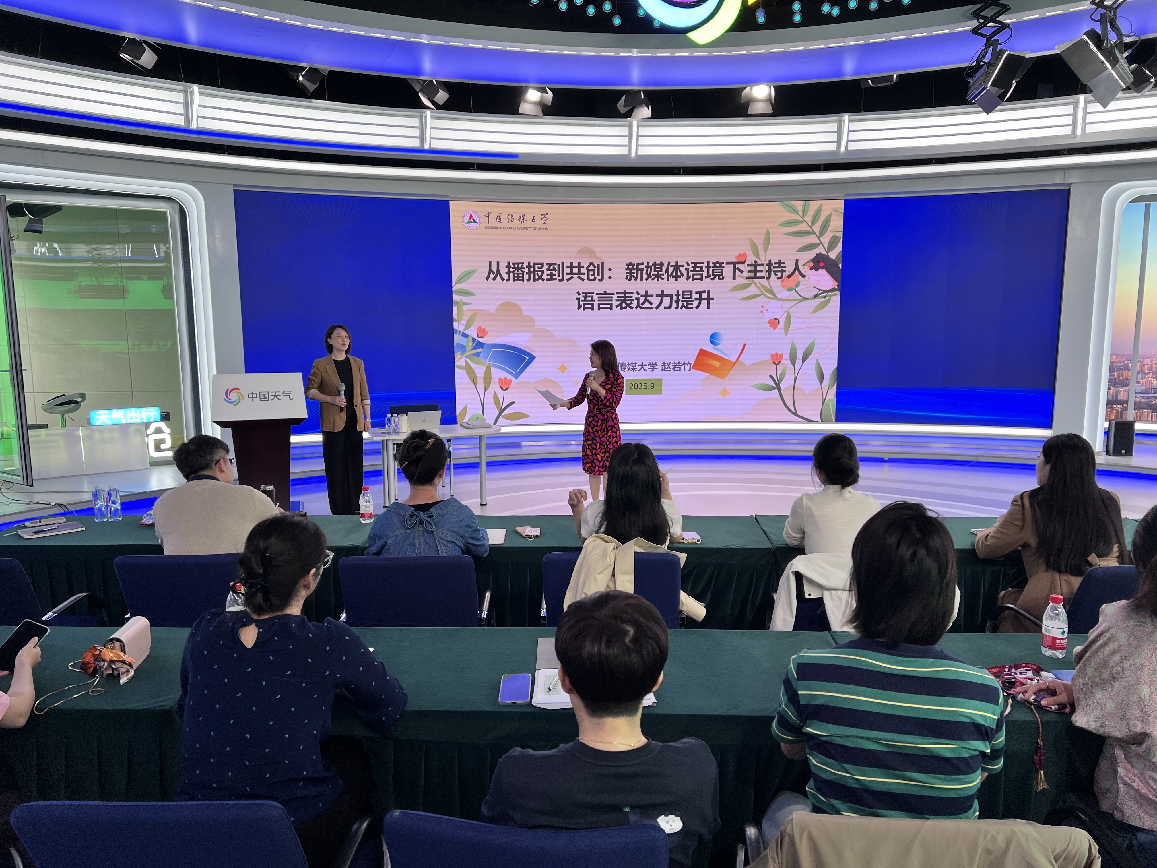 9月29日双节来临之际,华风集团出镜人才培养第四期课程在集团109演播室成功举办。集团业务管理部邀请气象中心三位预报员参加培训。品牌形象管理中心特邀中国传媒大学播音主持艺术学院副教授赵若竹,为集团出镜人才带来《从播报到共创:新媒体语境下主持人语言表达力提升》专题培训。