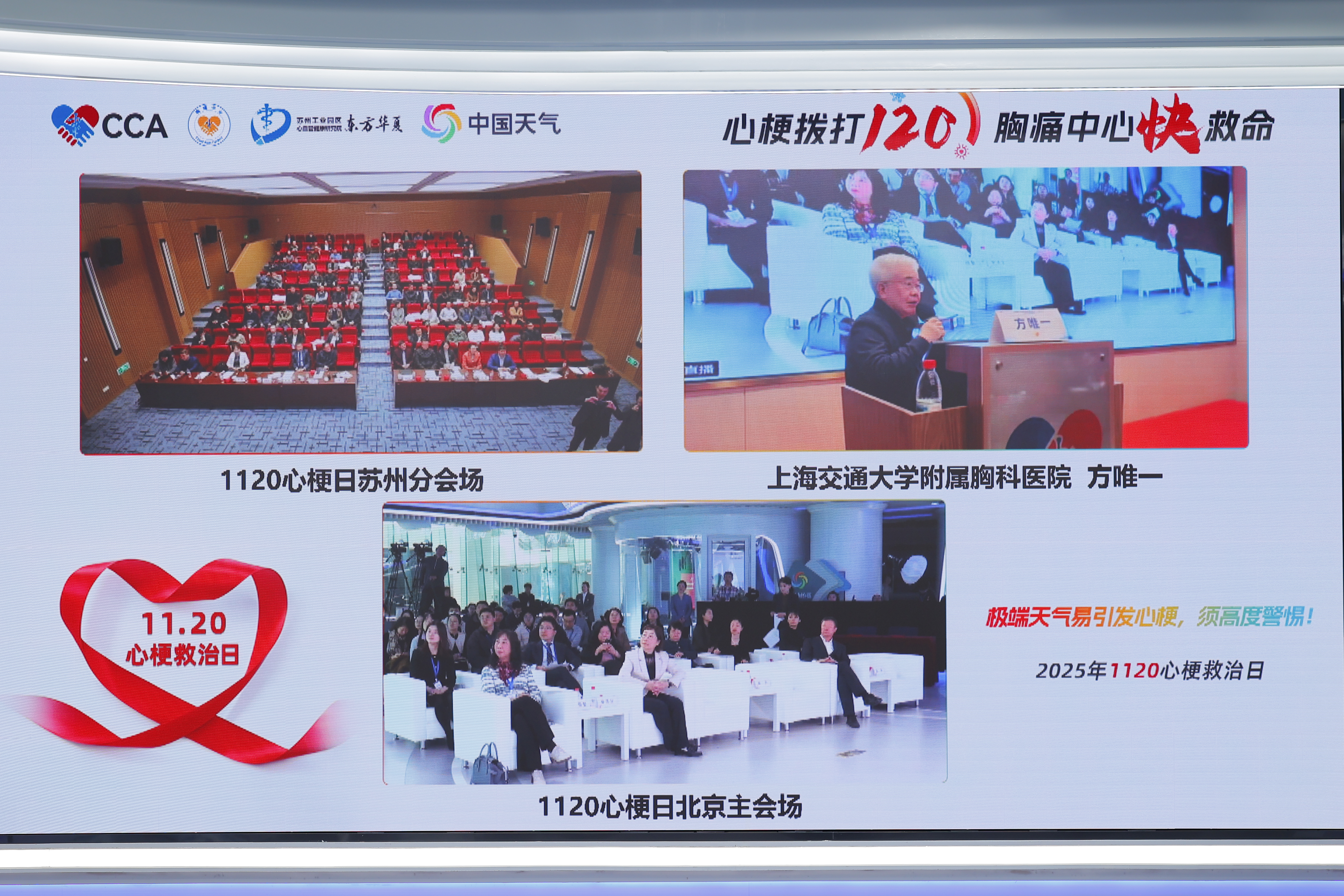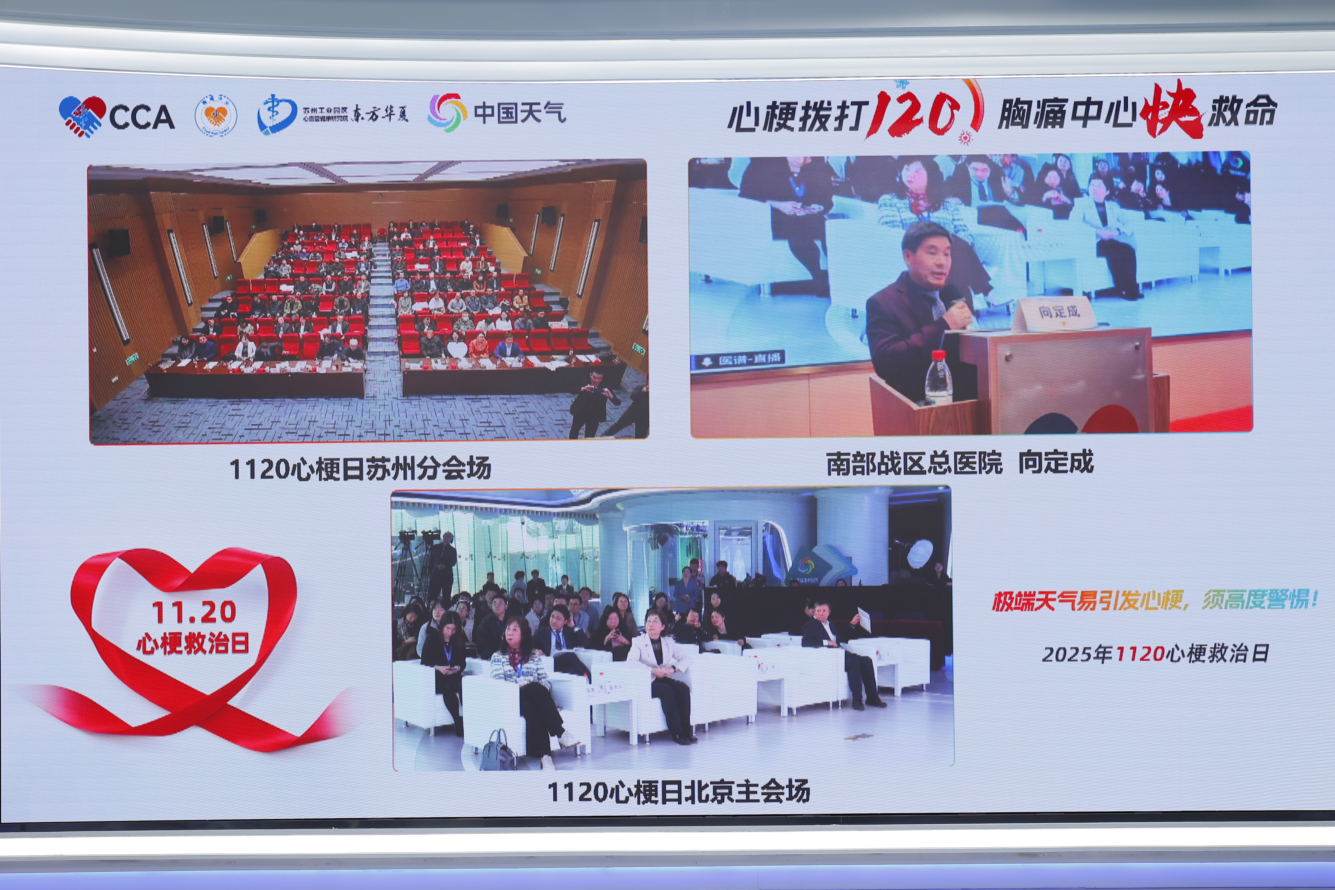 苏州分会场同时正在进行胸痛中心专家培训会,解放军南部战区总医院向定成教授、上海交通大学附属胸科医院方唯一教授和苏州现场百余位胸痛中心专家通过连线向全国的观众问好,展现了我国胸痛中心体系持续完善专家队伍建设的不懈努力。