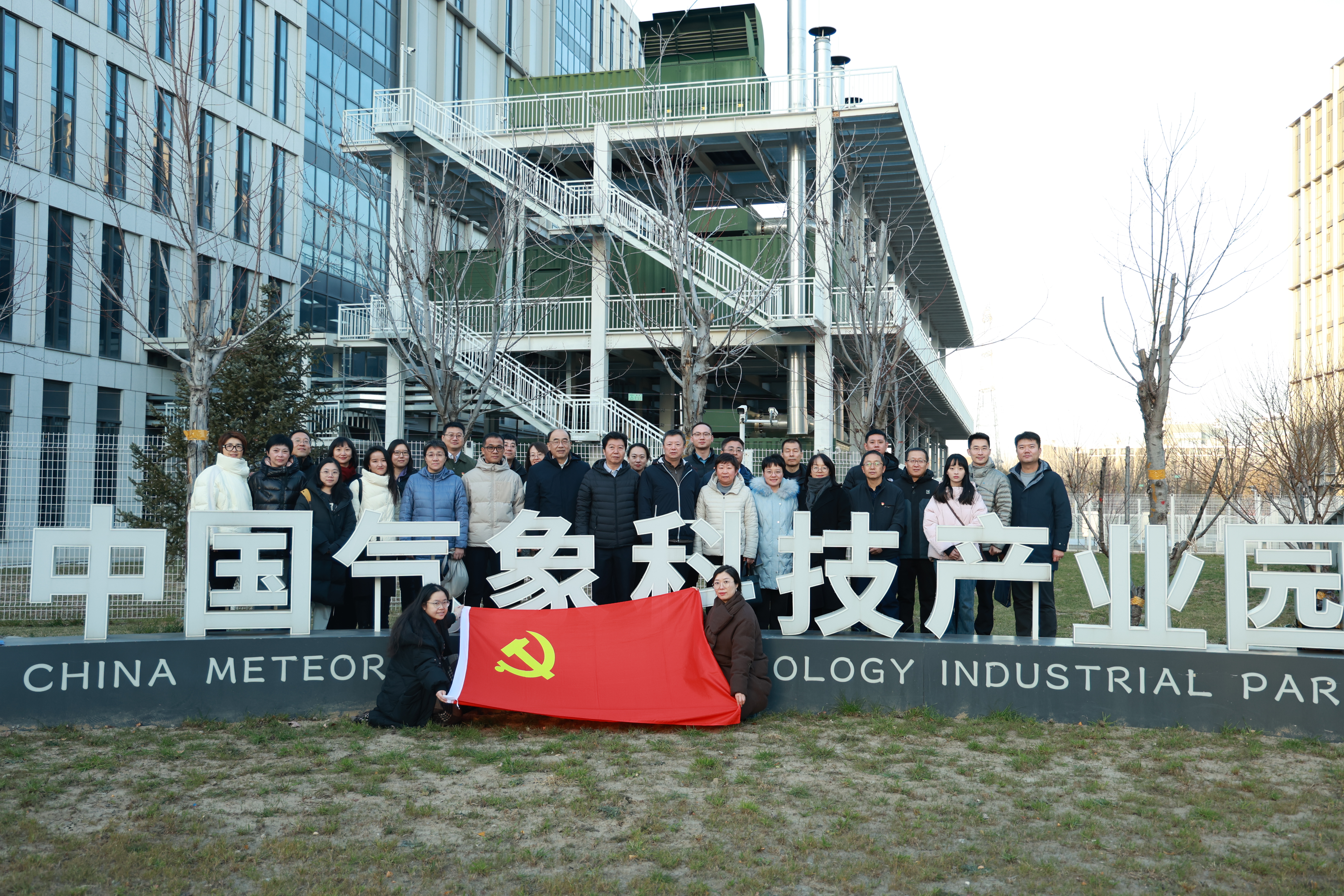 随后,党员代表一行前往中国气象科技产业园(海淀园)调研。大家首先听取了产业园管理运营中心围绕园区战略定位、建设进展、企业集聚效应及创新生态构建等情况的汇报,对气象科技产业化的前沿布局有了整体认识。期间,与入驻园区的代表企业就气象技术研发、成果转化等方面进行了交流。