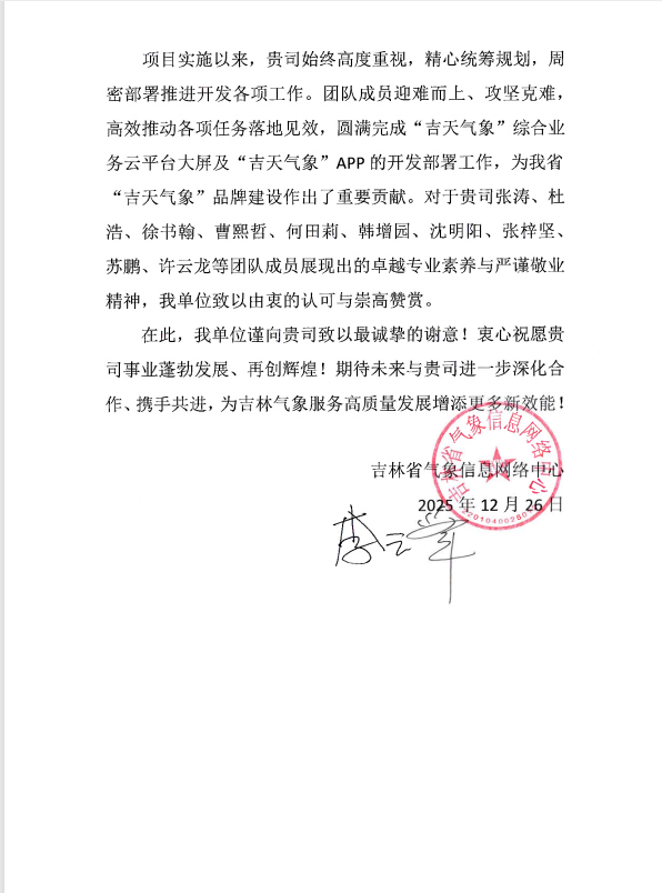 吉林省气象信息网络中心感谢信