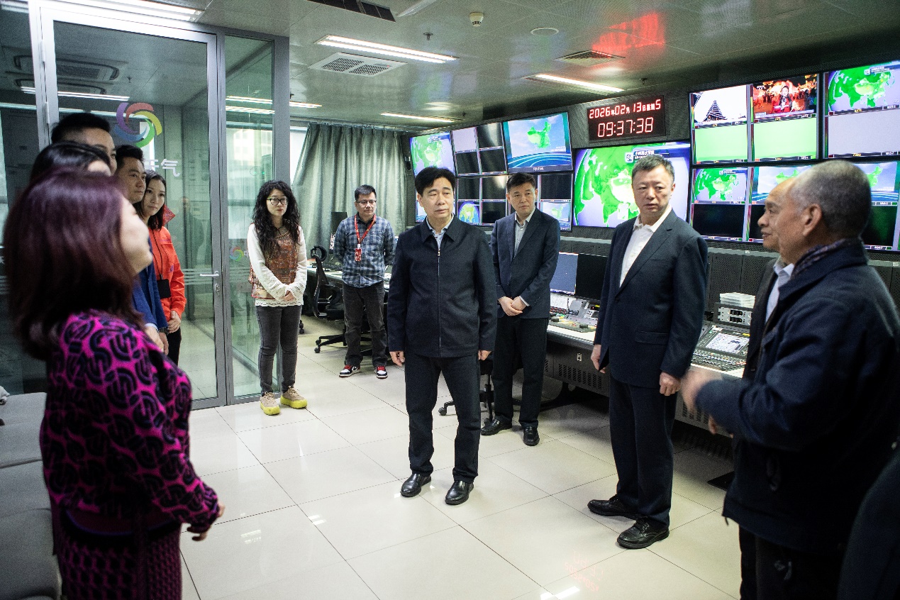 熊绍员副局长一行先后深入集团影视业务播出机房、317高清演播室及大楼中控机房,既与一线值班人员亲切交谈、致以问候,也聚焦安全生产和业务平台稳定运行开展细致检查。检查过程中,他详细询问并实地查看了影视业务运行态势、灾备体系建设、软硬件升级迭代进度,全面了解气象影视业务全流程规范执行情况及极端场景应急演练开展成效,重点核查了机房消防安全、设备运行安全、值班值守制度落实等安全生产关键环节,对集团在安全生产和业务保障方面的前期工作给予肯定。